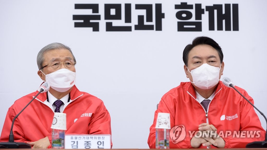 발언하는 김종인 총괄선거대책위원장국민의힘 김종인 총괄선거대책위원장(왼쪽)이 27일 서울 여의도 국회에서 열린 중앙선거대책위원회의에서 발언하고 있다. 2021.12.27국민의힘 김종…
