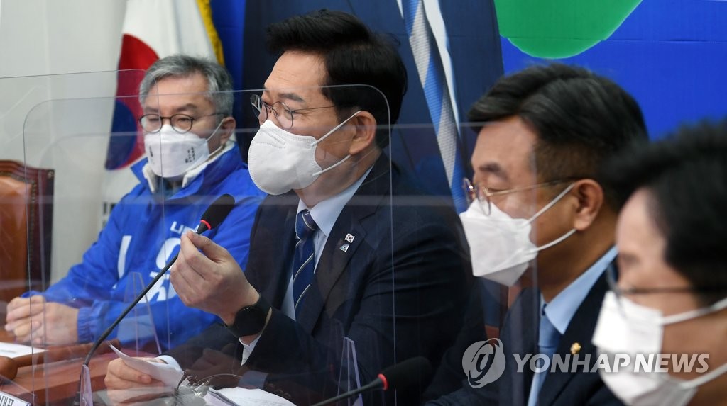 최고위에서 발언하는 송영길 대표더불어민주당 송영길 대표가 22일 서울 여의도 국회에서 열린 최고위원회의에서 발언하고 있다.더불어민주당 송영길 대표는 24일 오전 9시 여의도 당사에…