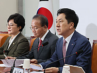 국민의힘 김기현 대표가 8일 오후 국회에서 열린 최고위원회의에서 발언하고 있다.국민의힘 김기현 대표는 8일 이래경 다른백년 명예이사장이 더불어민주당 혁신위원장으로 임명됐다가 '천안…