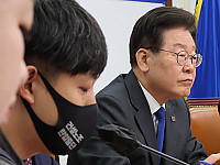 민주당 이재명 대표가 8일 국회 당 사무실에서 열린 '민주당-양대노총 청년정책 간담회'에서 참석자의 발언을 듣고 있다.더불어민주당 이재명 대표는 혁신위원장에 임명됐다가 극단적 성향…