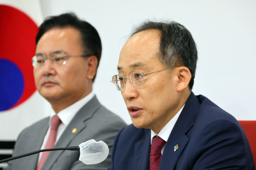 추 원내대표는 민주당이 이날 국회 법제사법위를 열어 입법 청문회와 국정조사를 추진하겠다고 밝힌 데 대해선 "비정상적인 국회 운영, 상임위 구성 등을 다시 원점으로 돌려놓는 게 국민이 바라는 모습으로, 국회가 정상 운영되면 부처 안건, 법안을 심도 있게 심사할 수 있다"며 "거대 야당의 폭거로 파행 국회가 운영되는 모습을 중단하라"고 요구했다.