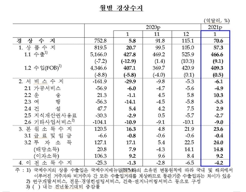 수출 호조에 1월 경상흑자 71억달러…9개월 연속 흑자(종합)