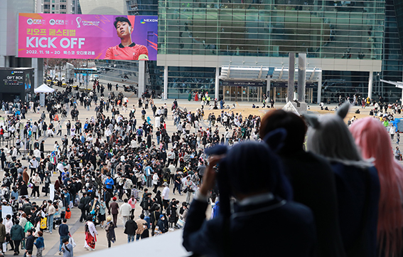 20일 오후 부산 해운대구 벡스코에서 열린 국제게임전시회 지스타 2022에서 코스프레한 참가자들이 축제를 즐기고 있다.부산 벡스코(BEXCO)에서 열린 국제 게임 전시회 '지스타(…
