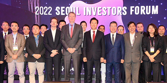 '서울 인베스터스 포럼'에 참석한 오세훈 서울시장(앞줄 왼쪽에서 다섯번째)"이 사업의 수익 모델은 무엇입니까?", "비슷한 사업을 하는 기존 기업들과 차별화한 요소는 무엇인가요?"…