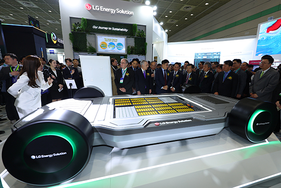 지난6일 서울 강남구 코엑스에서 열린2024인터배터리(INTER BATTERY)에서 개막식을 마친 강경성 산업부1차관,한국배터리산업협회장인LG에너지솔루션 김동명 대표,이석희SK온 …