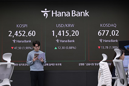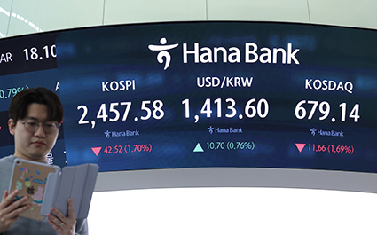 '韓 경제 곳곳에 먹구름' 코스피 장중 1.8% 내려 2,460대