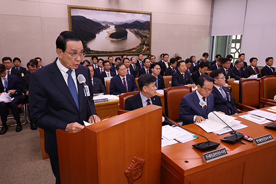 14일 오전 열린 서울 여의도 국회 농림축산식품해양수산위원회의 수산업협동조합중앙회,해양환경공단,해양수산과학기술진흥원 등의 국정감사에서노동진 수산업협동조합중앙회회장이 업무보고를 하고…