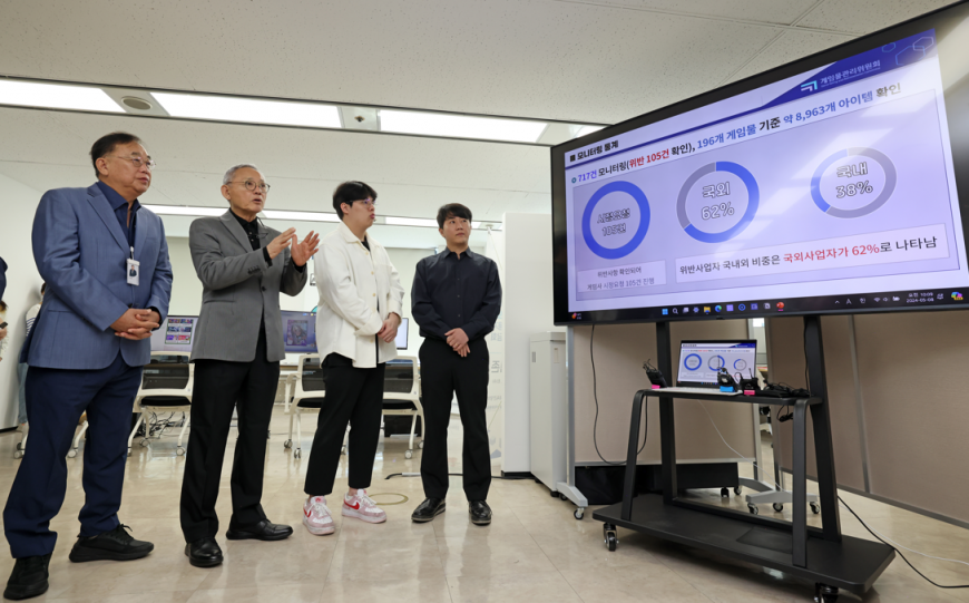 유인촌 문화체육관광부 장관이 8일 서울 서대문구 게임물관리위원회 수도권사무소를 방문해 확률형 아이템 모니터링 현황을 점검했다.