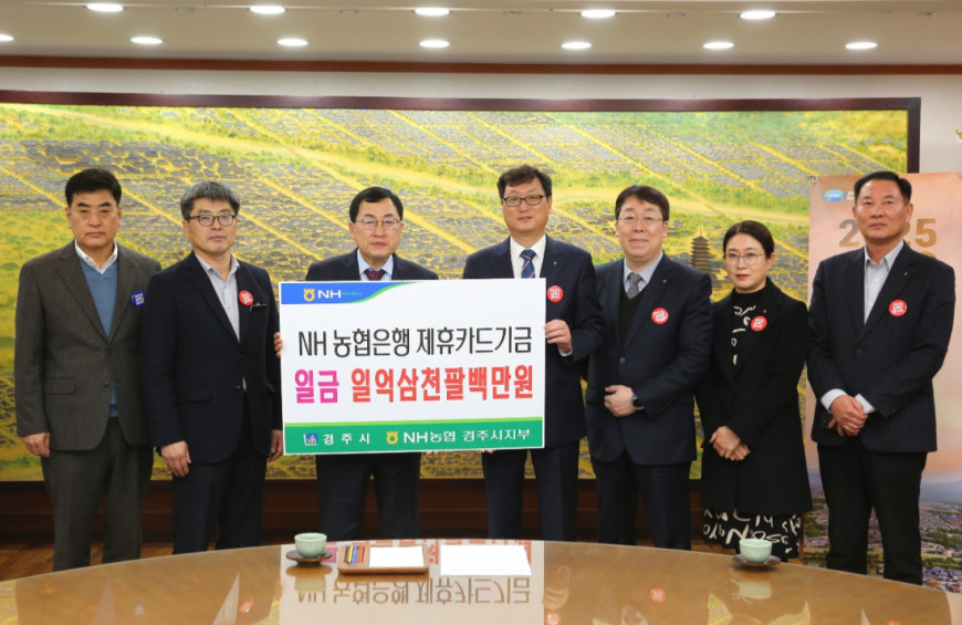 경주시가 7일 시청 대외협력실에서 NH농협은행 경주시지부(지부장 조현철)로부터 지난해 제휴카드 적립기금 138196680원을 전달 받았다.