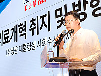 장상윤 대통령실 사회수석비서관이 29일 오후 인천 영종도 인천국제공항공사 인재개발원에서 열린 국민의힘 국회의원 연찬회에서 '의료개혁 취지와 방향'에 대해 설명하고 있다.대통령실은 …
