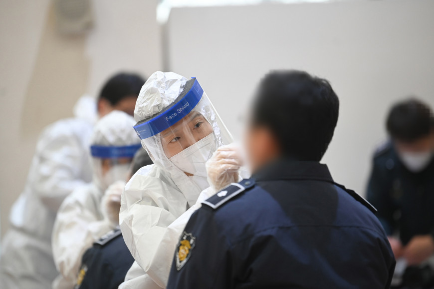 (여주=연합뉴스) 28일 경기도 여주시 여주교도소 설치된 신종 코로나바이러스 감염증(코로나19) 신속 PCR 검사소에서 관계자들이 검사를 받고 있다. 2020.12.28 [여주시 제공. 재판매 및 DB 금지] xanadu@yna.co.kr