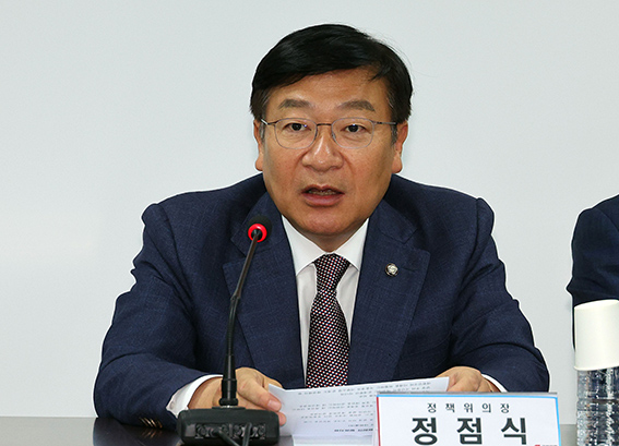 국민의힘 정점식 정책위의장이13일 오후 서울 여의도 국민의힘 당사에서 열린 비상대책위원회 회의에서 발언하고 있다.국민의힘은16일 더불어민주당이 추진하는'전국민 민생회복지원금25만원…