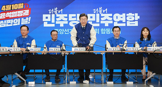 더불어민주당 상임선대위원장인 이재명 대표가20일 오전 서울 여의도 민주당 중앙당사에서 열린 더불어민주당·더불어민주연합 중앙선거대책위원회 합동회의에서 인사하고 있다.더불어민주당이 주…