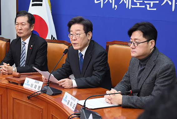 더불어민주당 이재명 대표가19일 오전 국회에서 열린 최고위원회의에서 발언하고 있다.국민의힘은19일 더불어민주당 이재명 대표가 북한의 미사일 도발 중단을 촉구하며'우리 북한의 김정일…