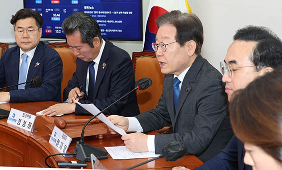 더불어민주당 이재명 대표가 21일 오전 서울 강남구 팁스타운 S6에서 열린 미 SVB 사태 대응 벤처ㆍ스타트업 간담회에서 발언하고 있다.더불어민주당 이재명 대표는 22일 자신의 위…