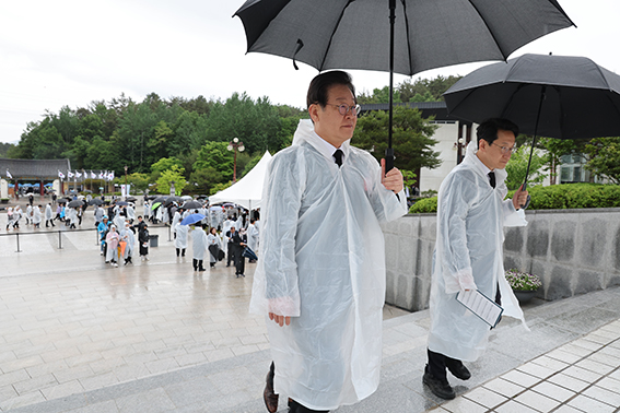 더불어민주당 이재명 대표가 18일 광주 북구 국립5·18민주묘지에서 열린 제43주년 5·18민주화운동 기념식에 입장하고 있다.더불어민주당 이재명 대표는 18일 윤석열 대통령의 5·…