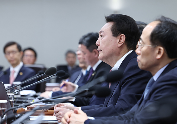 윤석열 대통령이 21일 서울 용산 대통령실 청사에서 열린 국무회의에서 한일관계 정상화 등에 대해 발언하고 있다.윤석열 대통령은 21일 "한일관계는 함께 노력해 함께 더 많이 얻는 …