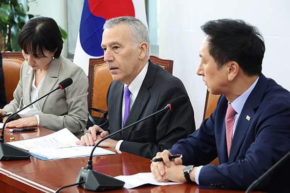 20일 국회 국민의힘 대표실을 방문한 필립 골드버그 주한미국대사가 김기현 대표를 접견하며 발언하고 있다.국민의힘 김기현 대표는 20일 필립 골드버그 주한미국대사와 만나 윤석열 대통…