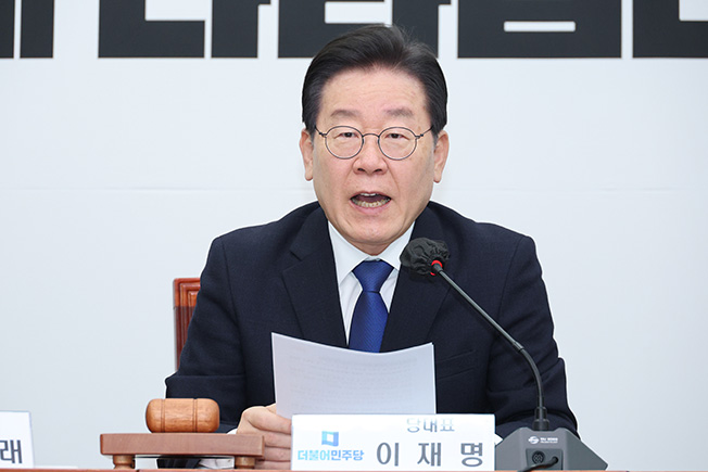 더불어민주당 이재명 대표가 15일 오전 국회에서 열린 최고위원회의에서 발언하고 있다.더불어민주당 이재명 대표는 15일 "윤석열 특권 정권의 선택적인 법치주의와 편파적인 이중 잣대를…