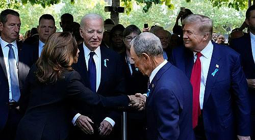 美 9·11테러 추모행사…토론 격돌 해리스·트럼프, 나란히 참석