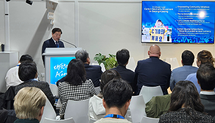유엔기후변화협약 당사국총회서 발표하는 박승원 광명시장'기후위기 대응ㆍ에너지전환 지방정부협의회' 회장인 박승원 경기 광명시장이 아제르바이잔 바쿠에서 열리는 제29차 유엔기후변화협약 …