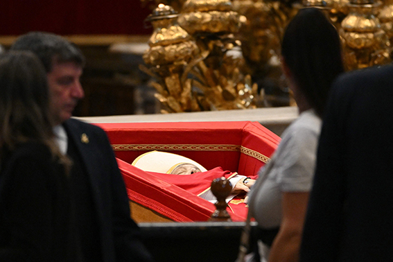 프란치스코 교황을 조문하는 일반 신자들평생 가장 낮은 자리에서 약자들을 보듬는 모습을 보여왔던 프란치스코 교황은 마지막 가는 길에서조차 우러러 보이길 거부했다.선종 사흘만인 23일…