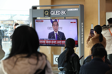 서울역에서 한덕수 권한대행 담화 시청하는 시민들주요 외신들은 26일(현지시간) 더불어민주당이 한덕수 대통령 권한대행 국무총리에 대한 탄핵소추안을 발의한 것을 상세히 보도하고 한국의…