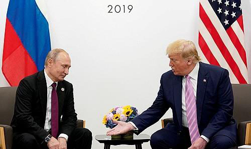 2019년 일본에서 개최된 G20 정상회담에서 만난 푸틴 대통령과 트럼프 대통령덴마크령 그린란드와 파마나 운하를 탐내며 군사력 사용 가능성까지 시사한 도널드 트럼프 미국 대통령 당…