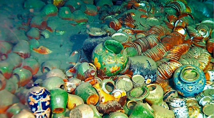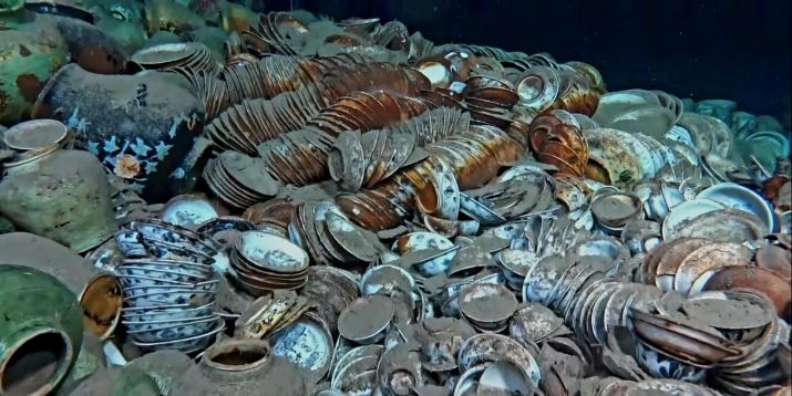 깊은 바다 아래에 침몰한 배에서는 도자기 수만 점이 발견됐다.