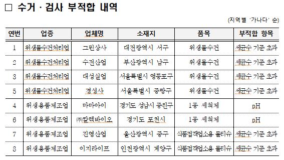 식품의약품안전처는 여름철을 맞아 위생용품제조업소와 위생물수건처리업소 총 656곳을 일제 점검한 결과 위생용품관리법을 위반한 업소 9곳(1.4%)을 적발했다고 29일 밝혔다.이번 점…