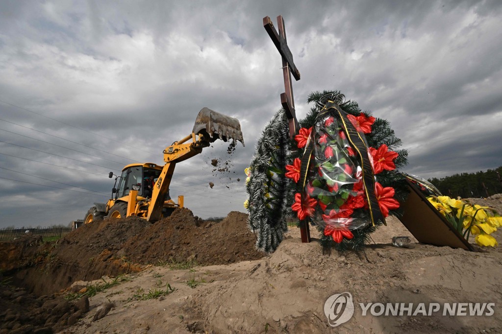 25일(현지시간) 우크라이나 부차의 민간인 희생자 매장지 발굴 현장 [AFP=연합뉴스 자료사국제형사재판소(I…